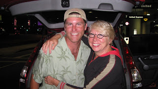 We raced to the airport but forgot to get gas for the rental car so we drove around and finally filled it up. We got to the airport checked in the car, raced to the baggage check in and waited and waited to check our bags. We finally got to the restaurant and had a bite to eat and then rushed once again to the plane. As we approached the terminal there was a woman holding the door and called out "Are you Corbett?" Dan answered huffing and puffing "YES!!!!" Then she said "Please hurry the plane is ready to take off." "Oh crap." We ran down the ramp and onto the plane, and saw 200 people looking straight at us. We were the last ones on the plane. Then I couldn't get my carry on in the overhead bin after trying three times. Then I had to walk it up to first class and then with my tail between my legs had to walk back and look at all of these people in the face again as I went back to my seat. That was not a pretty moment. Then we took off.